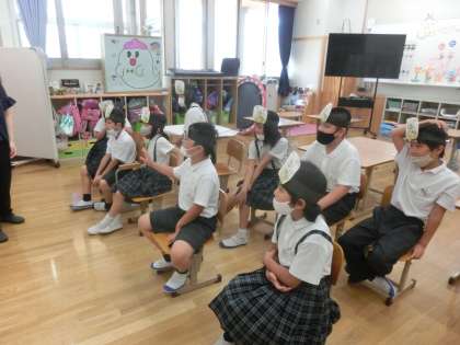 「おれはかまきり」という子どもたちも大好きな詩を音読しています。今日は詩のイメージをつかむために「カマキリ」になりきって音読してみました。お面をつけて場面の様子をジェスチャーで表現すると,自然と「読み方」もかわってきます。「強そうな声で読みたい」「太陽が暑いのが伝わるように読みたい」など,どんどんイメージがわいてくるようでした。