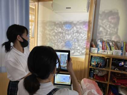 「卵パックをライトで照らすと,お花みたいな模様が映ってとてもきれいでした。」
