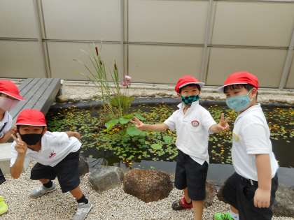 向島秀蓮小中学校のシンボルになっている蓮の花を見ることができ,とてもうれしそうでした!
