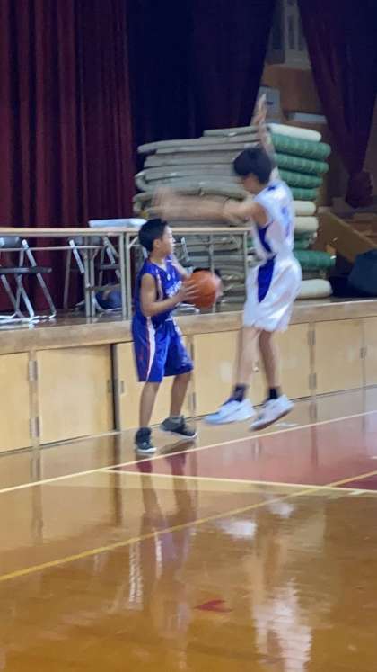 予定より少し遅れて始まりました。相手は衣笠中学校です。身長差が気になりますが、思いっきりぶつかってほしいと思います。
