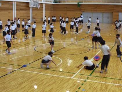 各クラスからの発表が終わってからはドッヂビーをしてして交流しました。