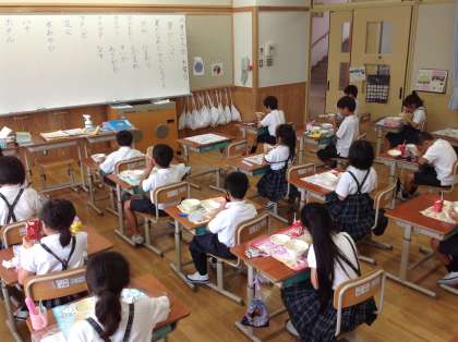 きゅう食がスタートし,おいしいきゅう食を しずかに食べています。