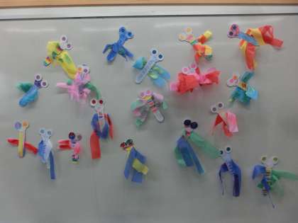 1組(あ・い)の教室横の掲示板にはトンボがたくさんとんでいます…!