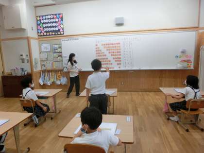 ブロックを使って10を作る活動をしました。「10は1と9,2と8,3と7…」と10になる数を考えていきました。まずは自分で考えて,それから一人ずつ前に出てきて発表(共有)しました。繰り返し学習をする中で定着をはかっていきたいと思います。