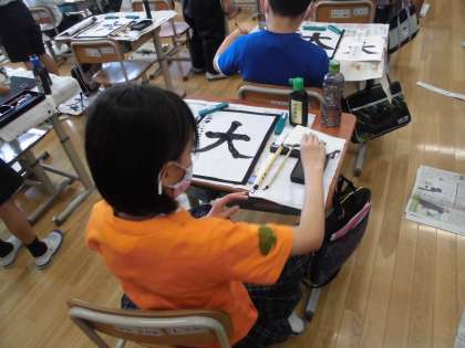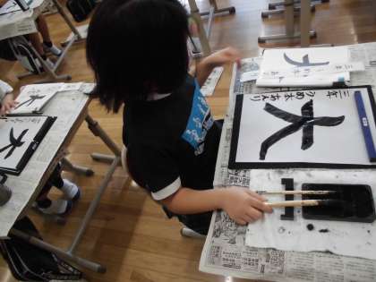 「トン,スー,トン」のリズムにあわせ,みんな集中して書くことができていました。