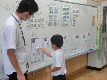 前回の学習を思い出しながら,まずは一人で考えて,最後にみんなで共有しました。友だちの発表を聞いて,考えを深めることができました。