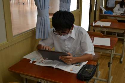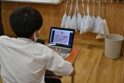 ロールプレイがされているクラスがあったり,ICTを使って自分の意見を発信し,他の人の考えとを比べているクラスがあったり…。「考える道徳」を具現化するために教員もいろいろ工夫しています。本校がめざす6つの資質・能力(「考える力」「発信する力」「コミュニケーション力」「折れない力」「自律的活動力」「多様性を受容する力」)の育成に,道徳の授業は欠かせません。