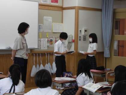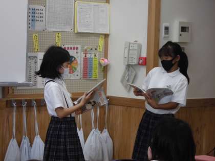 友だちとペアになって起きた時間や寝た時間について尋ね合いました。