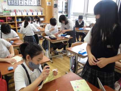 新たな縫い方ですが,教え合いながら集中して縫っていました。