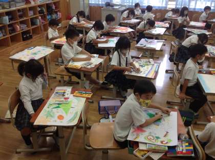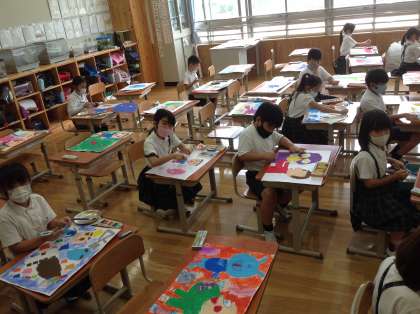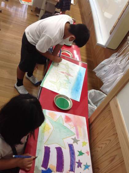 さらに 楽しみにしていた絵の具をつかって 今回は絵をかいています。