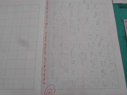 中には,学習したばかりの漢字を使ったり,1ページ以上の文章を書いてたくさんの思いを伝えたりしている生徒もいます。