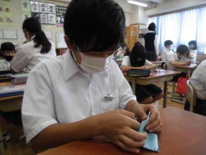 今日は,家庭科の作品作りの仕上げの時間でした。