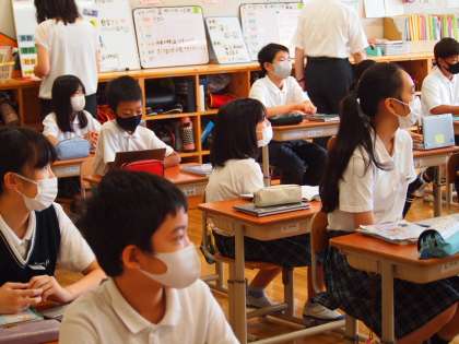 本校では,今月を研究授業月間とし,各教科で研究授業を実施しています。本日3限,算数の研究授業が6年生で実施されました。本校では今年,5年生以上を完全に教科担任制とし,より質の高い授業が提供できるよう研修を重ねております。6年生の算数の授業は,後期課程の数学の教員が担当し,後期課程での学習内容も見据えて授業を展開しています。