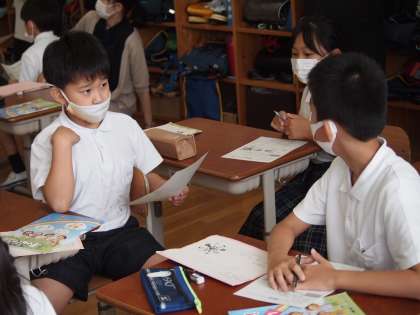 以前,6年生と英語で交流した際に,6年生が使っていた表現である“What 〜 do you like?”の表現の学習です。前回は6年生の質問に答える形だったのですが,質問の表現を学習したので,今度は6年生や他の学年の人たちと質問する側になって交流ができそうです。