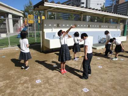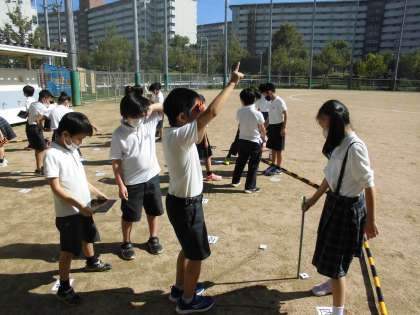 キラキラの太陽の下,理科では太陽の位置の観察を行いました。