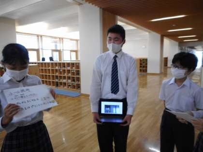 今日の放課後,1年生の担任の先生のところに,7年生の生徒が事前の打ち合わせをしに来てくれました。