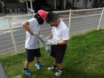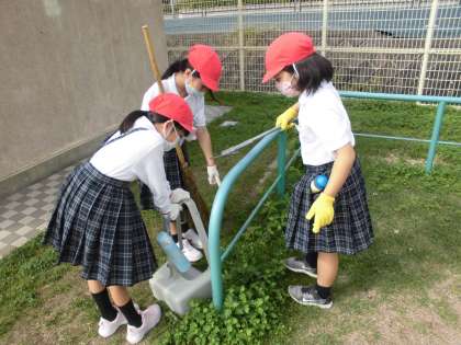 クラスごとに場所を分担し,学校の周りの掃除をしました。