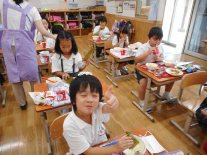 1年生,4月と比べて食べる量が増えています!体がしっかり作られていきます!