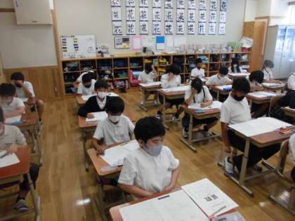 昨日から行われている総括考査。今年度,3回目を迎えた総括考査では,ずいぶんと集中力があがり,どの子も最後までやり切ろうとする姿が見られるようになりました。回を重ねるごとに自信をもって取り組んでいるようです。