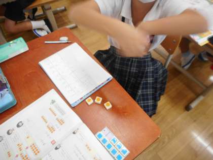 言葉で説明すると難しいですが,子どもたちは数図ブロックを使いながら確かめました。