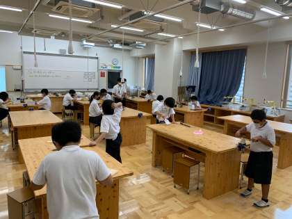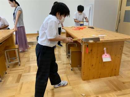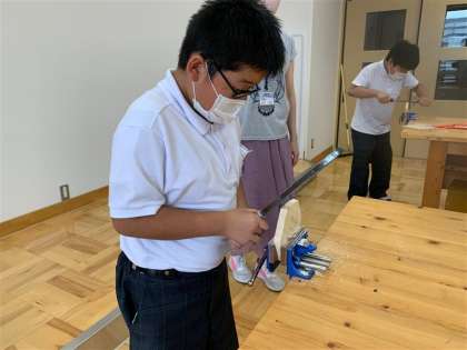 う組え組の5・6年生は木材を使ってコースター作りをしています。