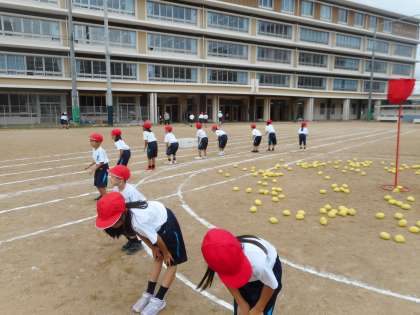 今日の体育では,体育参観で行う,秀蓮体操・50m走・タタロチカ・玉入れの練習をしました。