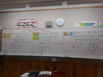 くりあがりのあるたし算の計算だけでなく,文章問題にも取り組んでいます。