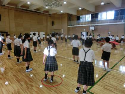 1組 5年生「宿泊学習にむけて キャンプファイヤーの練習」