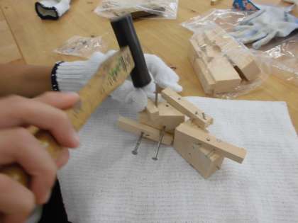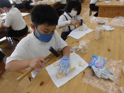 図工「くぎうちトントン」では,金づちを使って,木材にくぎをうっていきます。