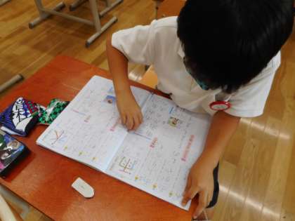 漢字の学習では,書き方だけではなく,成り立ちや読み方,書き順,画数なども確認しています。
