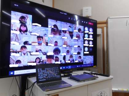 お家と学校をつなぐことを想定して,初めて学校の中でつないでみました。