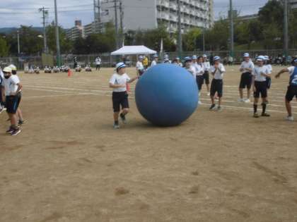 秀蓮体操を全体でしてから,代表リレー,代表大玉送り,そして全員リレーと進めていきました。