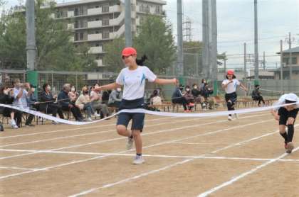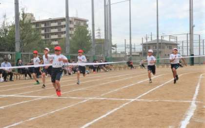 続いて個人種目の『80m走』では,全員が最後まで全力で走りぬくことができていました。