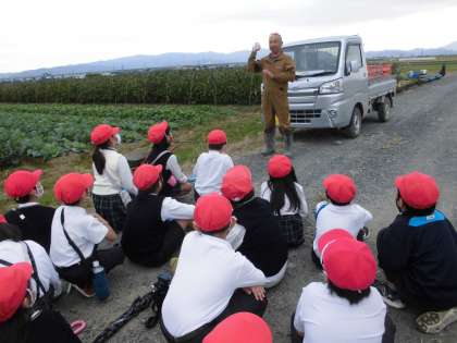向島地域で農家をしている方にお話を聞き,授業中に出てきた疑問を解決することができました。