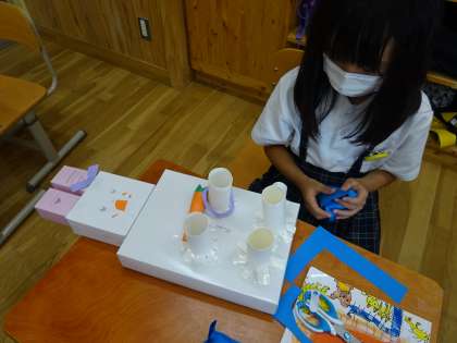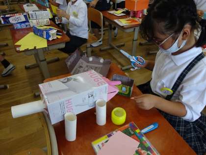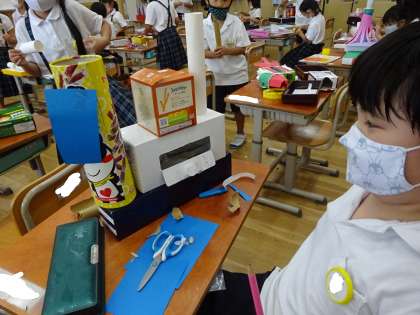 いろいろな空き箱や芯を使って,想像を膨らまし,