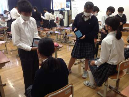 本日6限,グローバルコミュニケーション活動を行いました。英語の授業でクイズを作成し,紹介し合いました。キャラクタークイズを作成し,スライドを見せながら,わかりやすく伝える工夫を考えて,紹介していました。クイズを楽しむだけでなく,コミュニケーションの方法など学ぶことがたくさんあったようです。