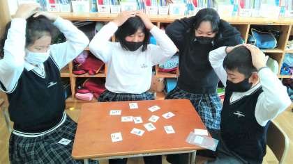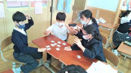 今日の学習では,国旗とその国で出来ることを一致させるための「国旗カードかるた取り」をしました。楽しく学ぶことができましたね!
