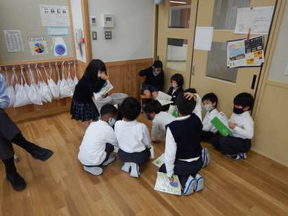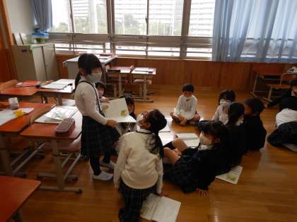 人物がしたことや様子を思い浮かべながら,自分のお気に入りの場面を簡単な動きをつけながら音読劇をしました。