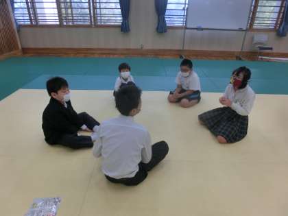 今日は「体育の部」の振り返りをしました。写真を見ながら,グループでがんばったことや来年の目標を話し合いました。それぞれが写真を見て,自分が一番輝いていた場面を思い出しながら話をしていました。お家でもぜひ聞いてみてください。