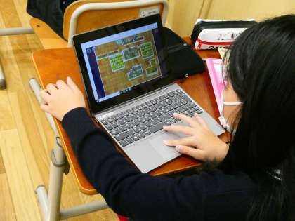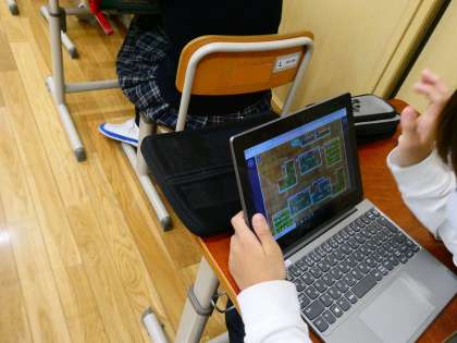 算数の学習で,「面積」の学習に入りました。ロイロノートを使って周りの長さが同じ図形を重ねたり,書き込んだりしながらマス目に注目しながら比較することができました。