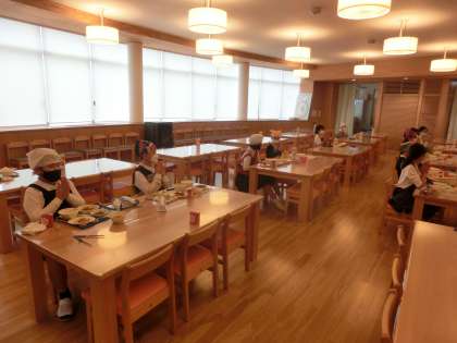 交流学級で調理実習をしました。「ゆでやさいサラダ」を作りました。グループの友だちと協力しておいしいサラダを作ることができました。「ゆでやさいサラダ」は交流学級の友だちとランチルームでおいしくいただきました。
