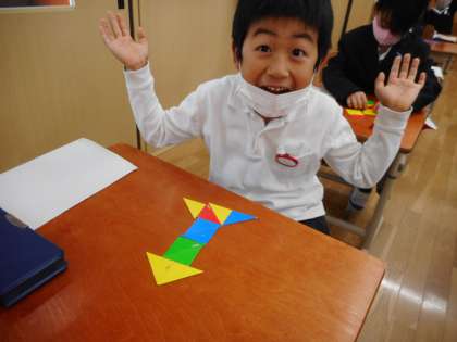 合同な形が作れた時,子どもたちはうれしうそうな表情を浮かべていました!