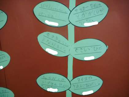 1年生は葉っぱのカードに書きました。