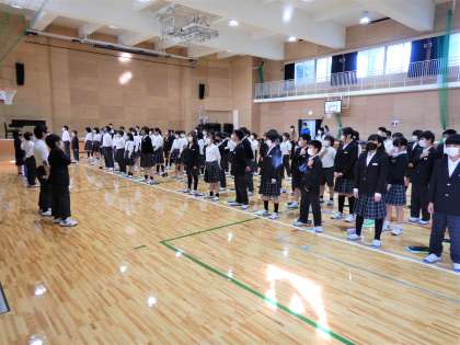今回の宿泊学習のテーマは『自立』と『協力』です。今日の「団結式」で生徒代表が話していたように,帰ってきたときには,自分たちでも成長を実感できるような,最高の宿泊学習にしましょう!