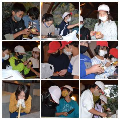 班で作るカレーライス。木に火をつけるのに苦労した班もありましたが、川遊びでゲットした隠し味に加え、協力して作ったというスパイスが加わり、とってもおいしいカレーができました。私も4班のレモンの隠し味のカレーと3班の醤油の隠し味のカレーをご馳走になりました。コーヒー味はどんな感じだったのでしょうか?