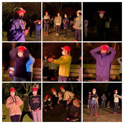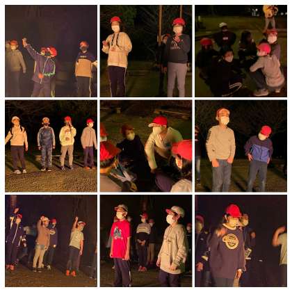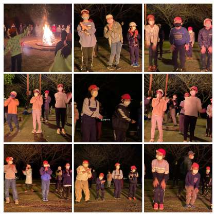 夜のメインイベント、キャンプファイヤーです。歌、ダンス、ゲームとどんどん出し物が続きます。熱く感じるのは、キャンプファイヤーの火ではなく、思いっきり楽しもうとする5年生の姿のせいかもしれません。