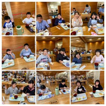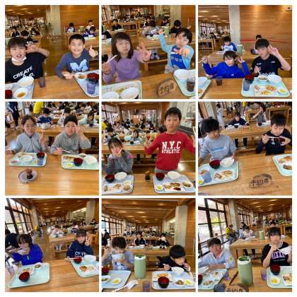 お昼ご飯です。お昼も食堂で食べるようです。黙食が残念ですが、仕方がありません。それでもカメラには笑顔を見せてくれるのが嬉しいです。