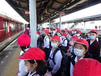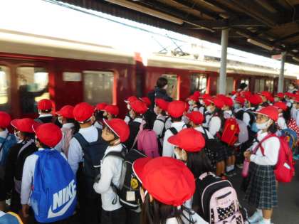 先生の方をちらちら見ながら,「次降りる?」「あとでれくらい?」