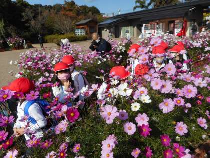 「白色のコスモスもあるんや〜」「わぁ〜きれい!」
