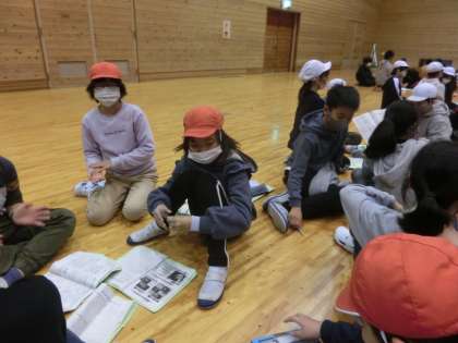 2日目,最後の活動(レクリエーション)のあと,グループや係で振り返りをしました。楽しかったことやがんばったことを話していました。